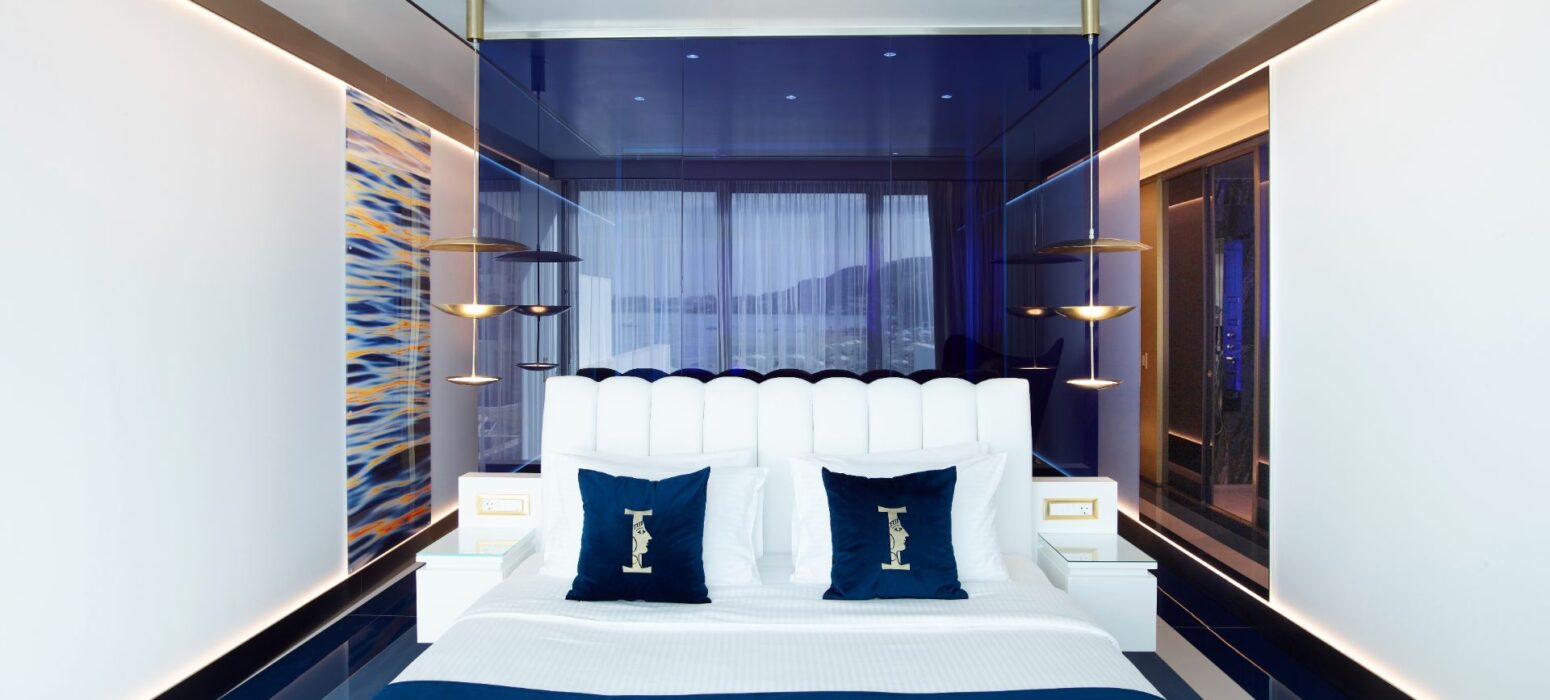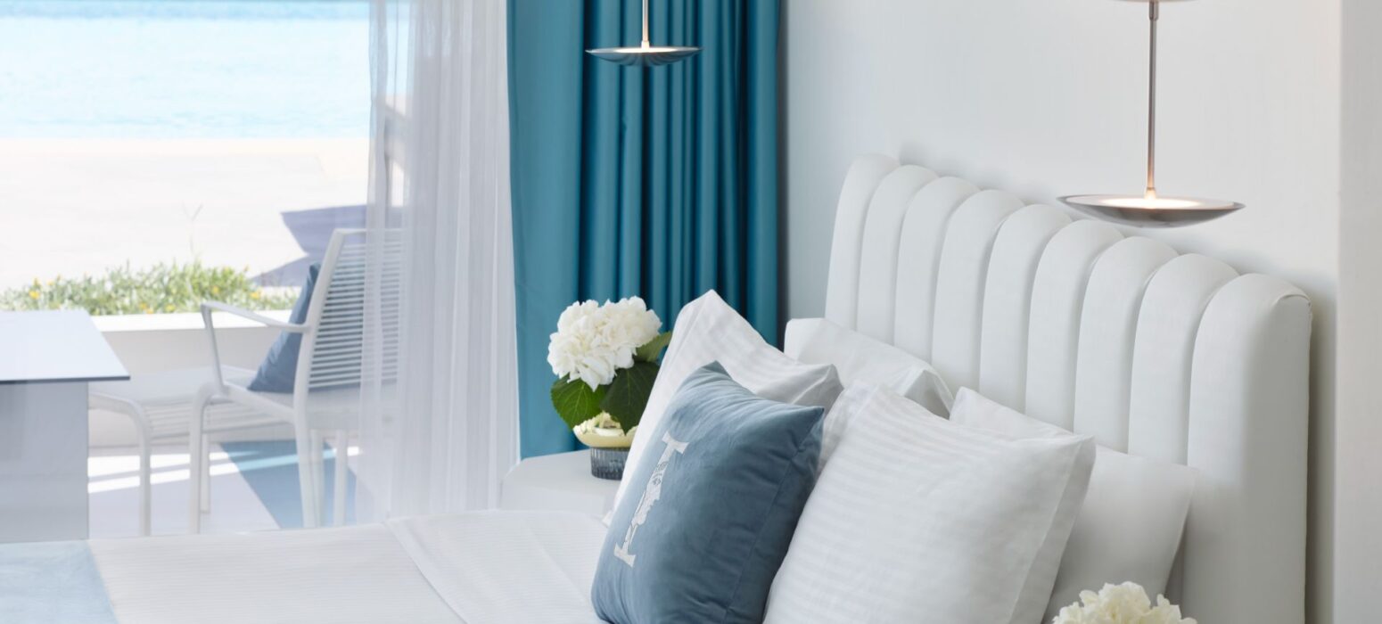 Les suites se distinguent par leur espace et leur raffinement, tandis que certaines chambres et suites disposent d’une piscine privée, idéale pour savourer des moments d’intimité face à la mer.